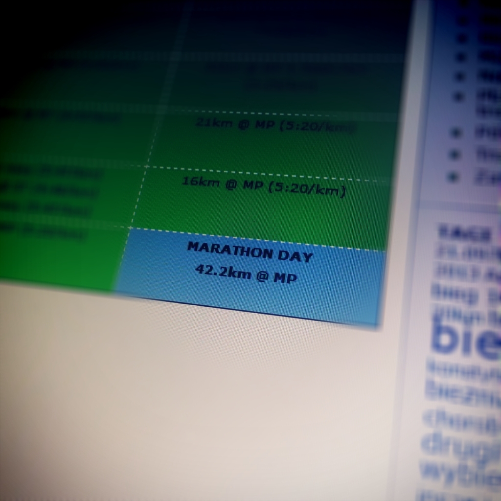 We czwartek odpuściłem trening tempa i zrobiłem go dzisiaj, miało być 5km w tempie maratońskim, tj. 5:20/km. Pogoda typowo letnia, nagrzany asfalt oddawał ciepło, szybko się rozgrzałem i starałem się biec swobodnie. Z tego mojego truchtania wyszło średnie tempo 5:02/km. Patrząc jednak na tętno (śr. 157) to chyba nie powinienem się tak rześko czuć. Chociaż, nie mam jeszcze żądnej wiedzy na temat zakresów, wiem jedno, że tempo na dłuższym odcinku 5:20/km powinienem utrzymać…bylebym nie wyrwał z tłumem i się za wcześnie nie spalił. Planuję podczepić się pod Pacemakera na 3:45 i robić swoje. 🙂