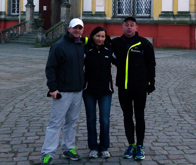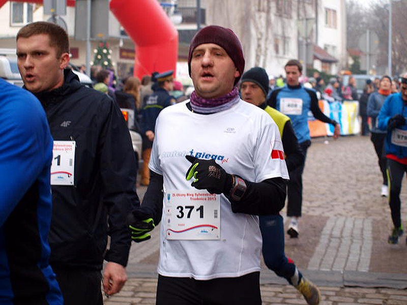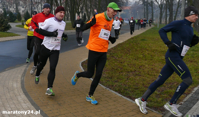 Tak jak to było w zeszłym roku i w tym postanowiłem zakończyć rok biegowo. Nie wiem, czy po dwóch edycjach, w których brałem udział mogę mówić, że to tradycja, ale będę chciał robić to każdego 31 grudnia. Tak się składa, że Trzebnica nie jest, aż tak daleko ode mnie, to mogę sobie na to pozwolić, w najgorszym przypadku ok. godz.15 jestem z powrotem w domu i mogę w spokoju przygotowywać się do świętowania nadejścia Nowego Roku. 🙂 Na poprzednią edycję pojechałem z Marcinem Jagielliczem i Patrykiem Łazarskim, w tym roku skład ekipy był w połowie zmodyfikowany. Ze starego zabrał się ze mną Patryk i udało mi się namówić na asfaltową dyszkę Sławka (biegigorskie.eu), który powiedział, że biegnie po życiówkę. Ma się rozumieć, że ustali swój rekord, ponieważ nigdy wcześniej nie biegł atestowanych zawodów na tym dystansie i każdy czas jaki uzyska będzie jego PB. 🙂 Do naszej wesołej gromadki dołączyła jeszcze Magda Toczyłowska, z którą wcześniej biegaliśmy już dłuższe wycieczki w terenie. Wszyscy mieli jakieś zarysy planów na ten bieg, Patryk jak zawsze jechał z celem biegu na maxa i pokusą poprawienia życiówki, która przed biegiem była na poziomie 34:18 (chyba, że coś źle zarejestrowałem – oczywiście, że źle 33:57). Magda jechała, żeby dobiec w dobrej formie, a za cel stawiała sobie tempo w przedziale 5:00-5:15. Sławek chciał towarzyszyć Magdzie, żeby było raźniej…jak się później okazało na ok 7km przyśpieszył, rozpoczynając pościg za mną ;). A co ze mną, nie miałem specjalnego celu. Po świętach pojawiły się dziwne dolegliwości ze stopami, kondycyjnie też za dobrze nie było, więc planu jako takiego nie było. Chciałem po prostu pobiec wsłuchując się w swój organizm, żeby nie spalić się za bardzo tylko równym tempem pokonać cały dystans, a w trakcie okaże się czy będę w stanie przyśpieszyć.